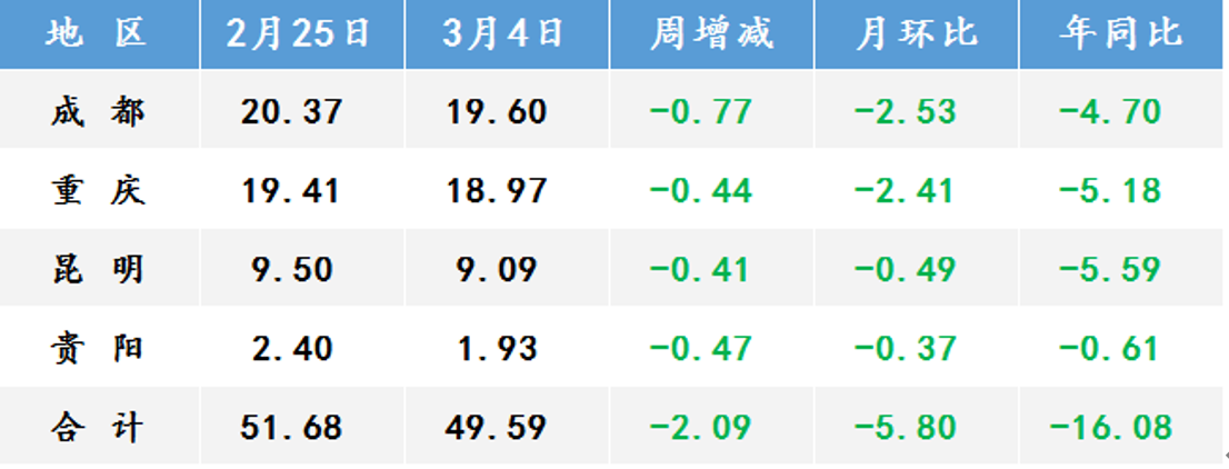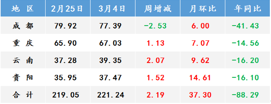 2、西南地区建筑钢材社会库存